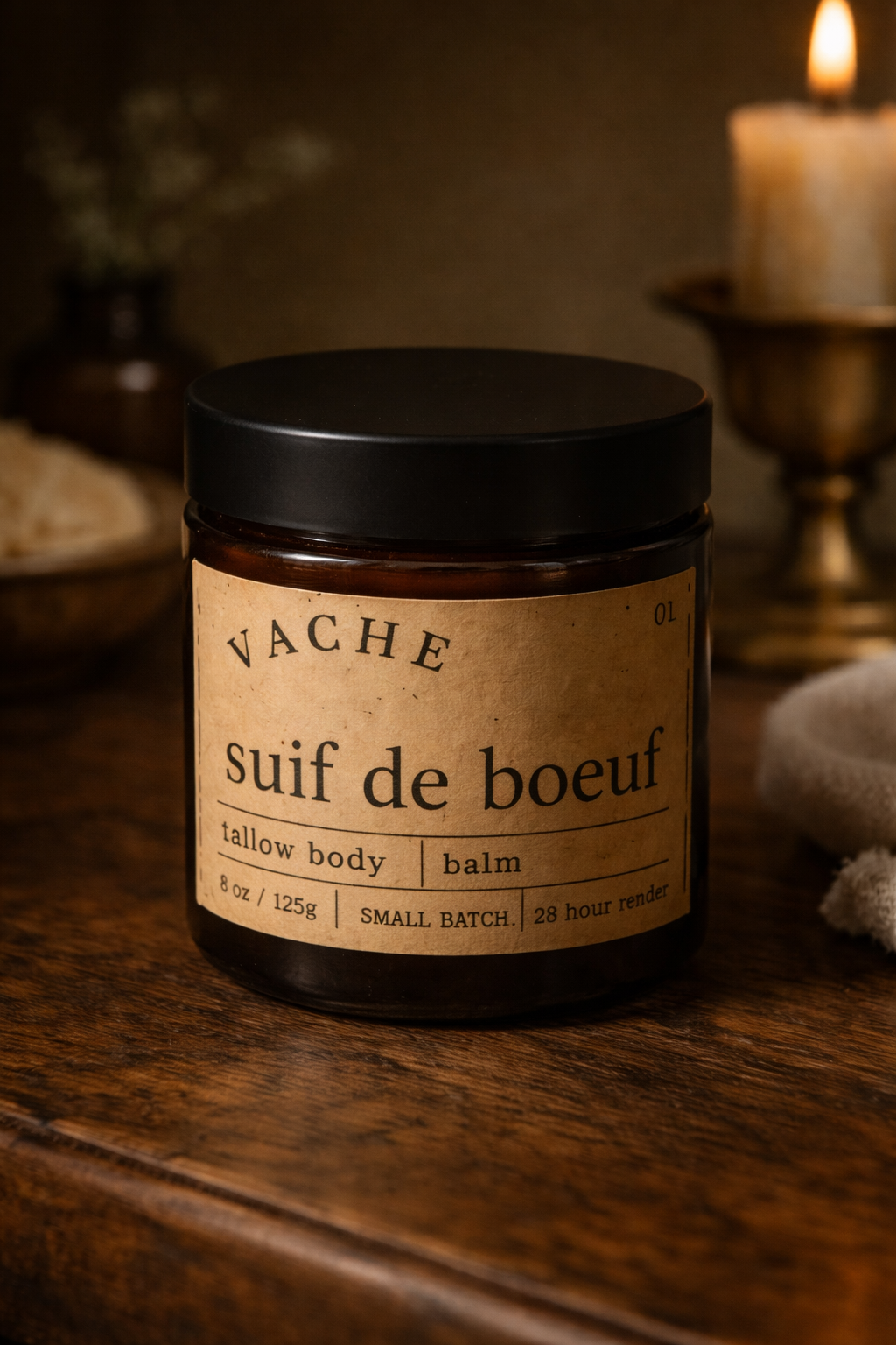 Vache Apothicaire est une petite entreprise familiale qui s'engage à partager la recette ancestrale de notre famille avec ceux qui sont assez avisés pour la rechercher. Nous nous engageons à produire du suif de bœuf 100 % nourri à l'herbe, biologique et de la plus haute qualité, fabriqué à la main.